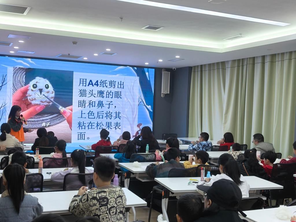 2024年12月7日,我校自然坊在宁德市科技馆举办“雪趣松果,猫头鹰影”松果猫头鹰手工活动,大雪节气这个特殊时间节点,将代表秋冬的“松果”与充满神秘的“猫头鹰”相结合,通过手工制作感受大自然在大雪时节的独特魅力。