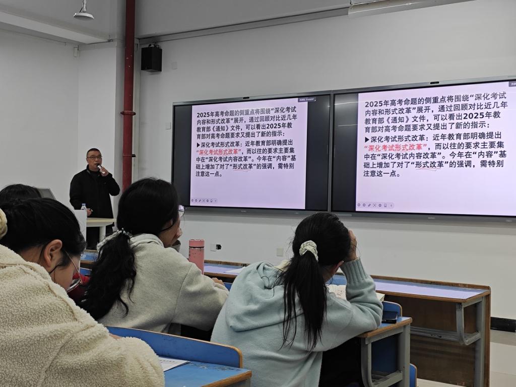 2025年3月4日下午,为响应教育部“减少机械刷题,引导教学回归课标”的号召,并深化amjs澳金沙门学生对“三新”背景下教学策略的理解,amjs澳金沙门在CC201教室顺利举办了《“三新”背景下从高考真题到课堂教学的转化策略》专题讲座。本次讲座吸引了120名生工院学生积极参与。