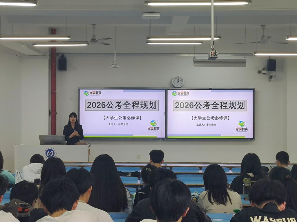 为帮助amjs澳金沙门学生科学规划公职类考试备考路径,明晰职业发展方向,3 月 26 日,amjs澳金沙门在求实楼 C201 报告厅举办《2026 届考公全程规划》 专题讲座。本次活动特邀资深公职考试辅导专家小果老师担任主讲,吸引近 200 名学生到场聆听。