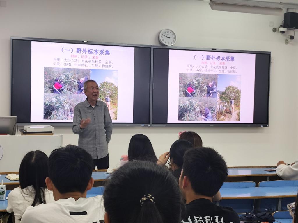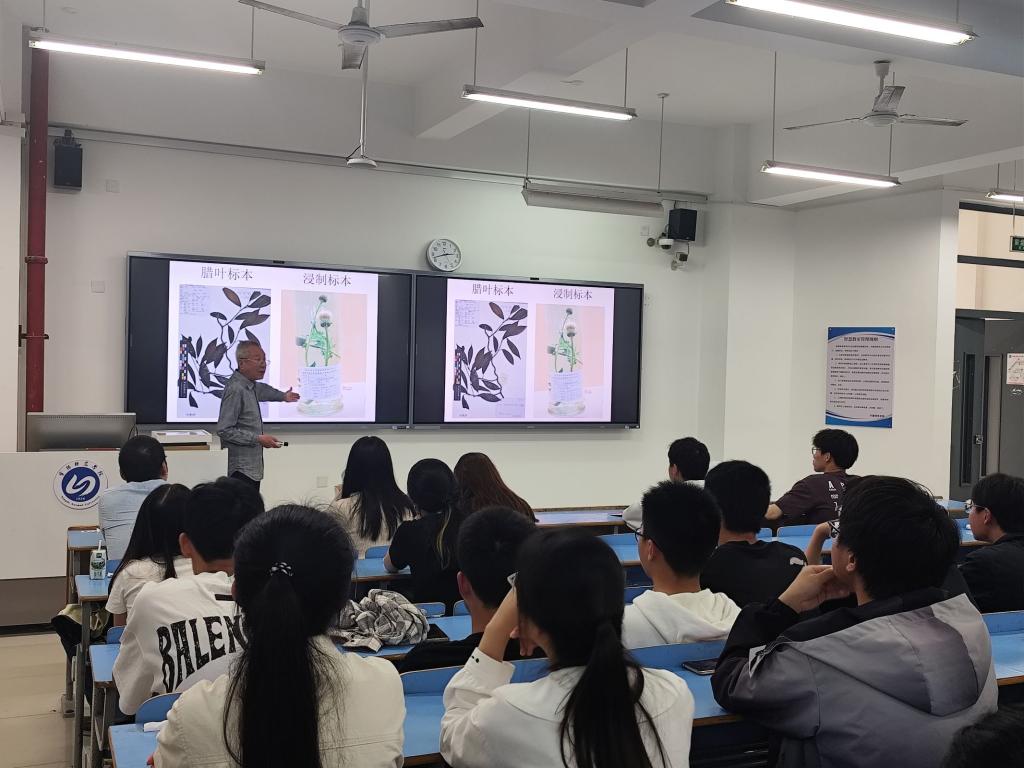 讲座伊始,陈勇教授以植物分类学及形态特征等专业知识为切入点,深入浅出地为同学们奠定理论基础。随后,他围绕腊叶标本、浸制标本等多种标本制作方法展开系统讲解,从植物样本采集的最佳时机、标本固定的关键技巧,到标本长期保存的科学策略,均进行了细致入微的阐述。在讲授过程中,陈教授结合丰富的实践经验,通过典型案例分析与操作要点强调,确保学生全面掌握标本制作核心技能。活动现场学术氛围浓厚,同学们全神贯注,认真记录要点,积极与主讲人互动交流。
