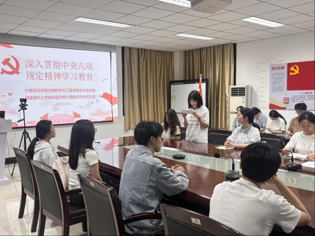 5月13日,amjs澳金沙门学生党支部与福建医科大学临床医学部宁德临床学生党支部联合开展深入贯彻中央八项规定精神学习教育,旨在进一步锤炼党性、提高思想觉悟、凝聚奋进力量。