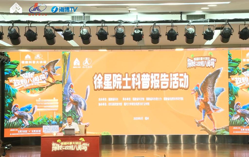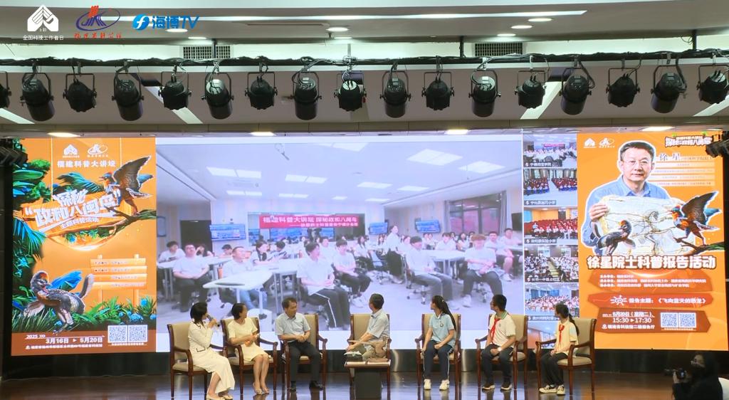作为小学语文课文《飞向蓝天的恐龙》的作者,徐星院士的名字早已被无数青少年熟知。这位发现并命名了数十种恐龙、研究成果入选《科学》杂志年度突破的科学家,此次以福建本土发现的“政和八闽鸟”化石为线索,将课本中的文字化为生动的科学图景。“神奇的鸟类家族如何起源的?”徐星院士以问题开场,通过对比恐龙和鸟类共享的相似特征,辅以复原动画和恐龙化石发掘故事,层层递进揭开恐龙向鸟类演化的奥秘。
