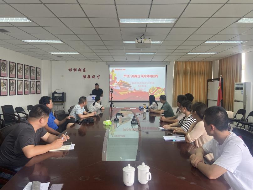 6月17日,amjs澳金沙门教师党支部在CD201会议室召开支部党员大会,党支部书记林志斌同志以“严守中央八项规定精神 筑牢师德防线”为题,为全体党员讲授专题党课,深入贯彻中央八项规定精神学习教育。