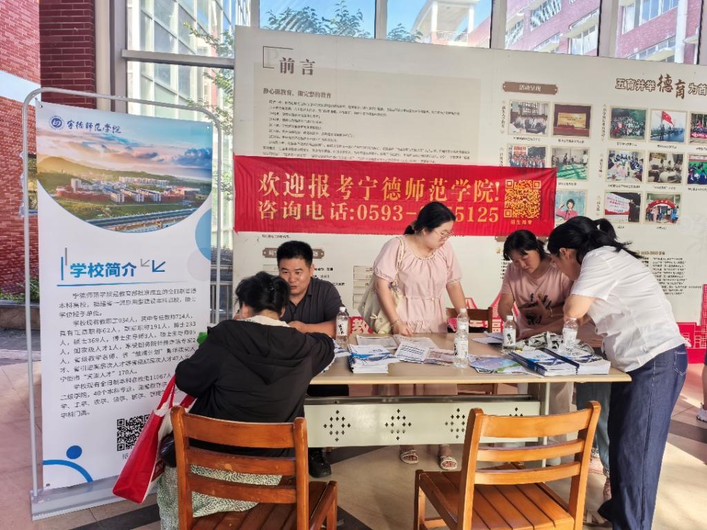周宁一中、周宁十中对招生宣传组的到来表示热烈欢迎。在宣传活动中,招生组从招生计划类别、录取政策、投档规则以及志愿填报常见问题等方面,为考生和家长进行了详细讲解与咨询服务,着重宣传了我校的办学特色与优势,全方位展示学校形象。对于考生及家长关心的优势专业、投档比例、就业前景和升学等问题,宣传组均给予耐心细致的解答,有效提升了考生和家长对我校的认同度。