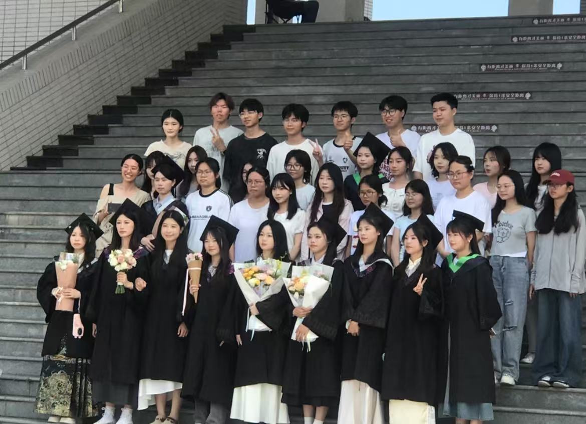 当日艳阳高照,毕业生们身着学士服、头戴学士帽有序集结。在摄影师的镜头下,庄重的集体合影凝聚着班级同窗情谊,随后师生间、好友间的单独合影更是暖意融融 —— 老师们欣然参与合影,与学生回顾四年点滴、送上毕业祝福。校园林荫道、湖畔等角落,随处可见毕业生们与校园景致的告别留影,每一帧画面都洋溢着对过往的眷恋与对未来的憧憬。