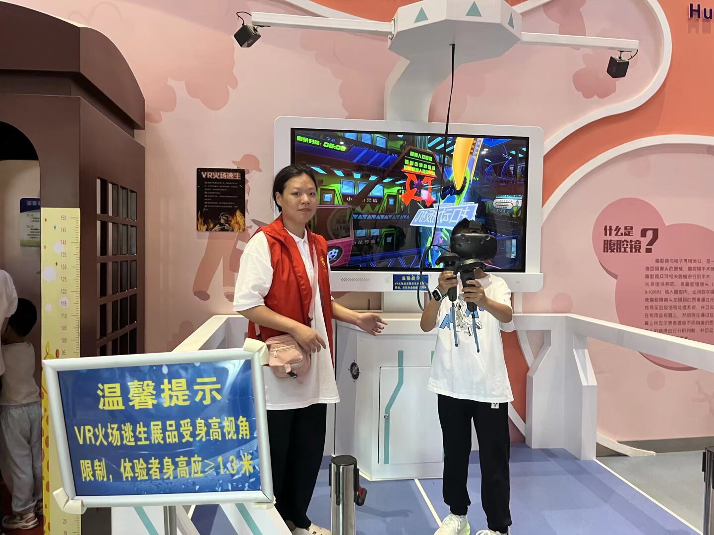 活动期间,实践队成员根据科技馆需求,被分配到不同区域承担多样化工作。在入口安检处,志愿者们主动引导游客有序放置随身包裹,保障安检流程顺畅,为场馆安全构筑起第一道坚实防线。在展区服务中,志愿者们运用通俗易懂的语言,在前沿科技、地球家园等展区为公众讲解科学原理。尤其在生命健康展区,队员们结合自身专业背景,深入浅出地介绍人体结构、健康生活方式等知识,使抽象概念变得生动可感。同时,队员们积极协助观众操作月球车、VR飞行器等互动展品,激发其对科学探索的浓厚兴趣。