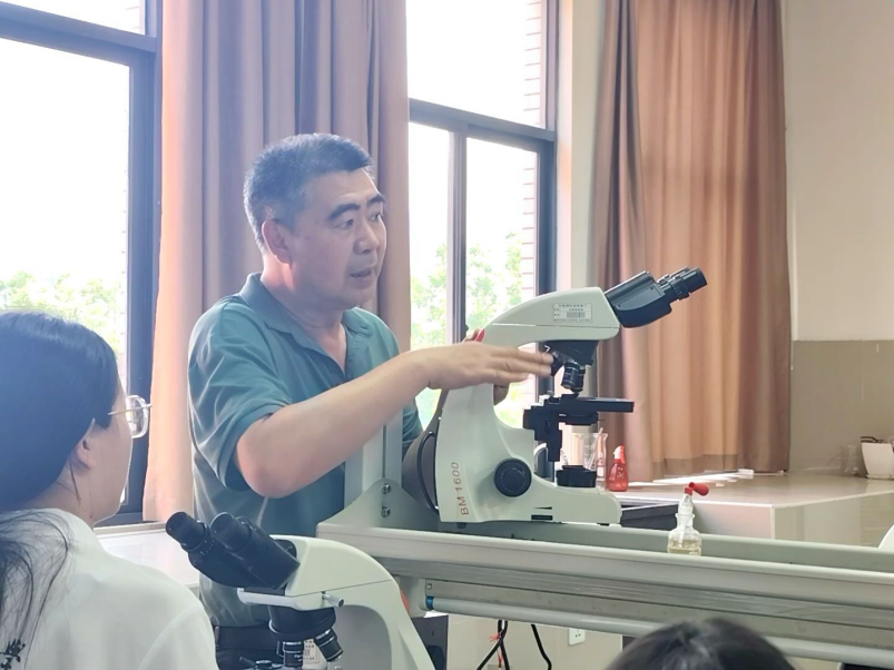 培训内容兼具理论基础与实践操作。阮少江院长亲自担任主讲,通过生动直观的实物演示,深入浅出地为学员们剖析了显微镜的结构组成与工作原理,清晰讲解了目镜、物镜、反光镜等关键部件的功能特点,为后续操作打下了坚实的理论基础。在显微镜实操环节,学员们热情投入,从基础的“对光”、规范放置标本,到精细调节焦距观察标本微观世界,一步步掌握了标准化的操作流程,提升了仪器使用能力。