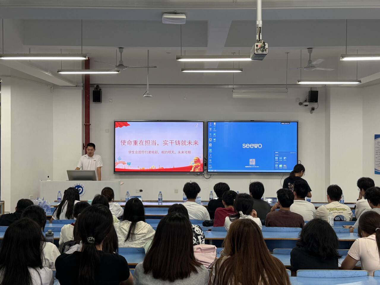 9月23日,amjs澳金沙门学生会换届大会在求知楼CC201教室顺利召开。学工处主任王永吉老师与全体学生会成员出席大会,共同见证学生会新老交接的重要时刻。
